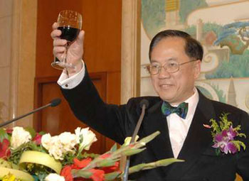 图:曾荫权向港区人大代表及政协委员祝酒。(图片来源:大公报)