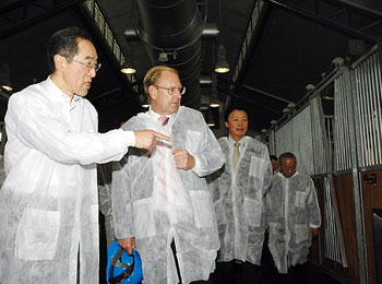 三月四日下午,香港署理行政长官唐英年(右二)与多名局长、警务处长,连同北京奥组委官员参观由沙田香港体育学院改建而成的奥运及残奥马术主要比赛场地和相关配套工程。 中新社发 谭达明 摄