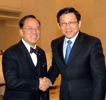中新网3月7日电 据香港特区政府网站消息,在京参加全国人大的香港特首曾荫权连日会见了多名中央政府官员,他表示,欢迎广东省委书记汪洋建议,以创新思维,在各个领域深化粤港合作。并指出,香港将积极配合,提升合作层次,体现互利互赢的发展方向。