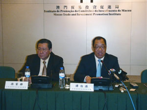 图:谭伯源公布临时经济补助措施。(图片来源:澳门日报)