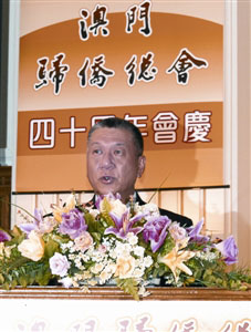 何厚铧致词肯定侨总贡献。(澳门日报)