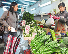 近期街市菜价动辄10多元,寻常市民皆感百上加斤。(图片来源:文汇报)