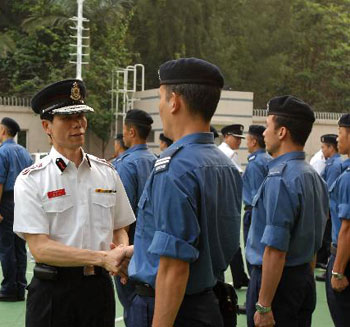 消防处处长卢振雄在东涌消防局为搜救队送行。期间,行政长官曾荫权亦致电为队员打气。