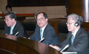 图:谭伯源(中)、孙家雄(左)和黄志雄出席立法会大会。(图片来源:澳门日报)