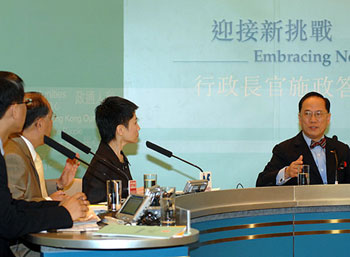 曾荫权重申,特区政府坚持“大市场、小政府”的原则,但金融市场有需要时,特区政府必定采取快而准、到位及够力度的行动,但没有需要时,特区政府必定退出。