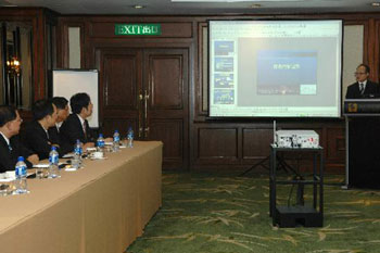 政制及内地事务局副秘书长陈伟基(右)20日早向台湾高雄市政府及旅游界参访团简介香港的旅游情况。(图片来源:香港特区政府网站)