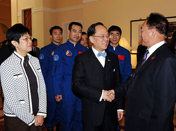 “神舟七号”载人航天飞行代表团离港前,出席了欢送会。(图片来源:香港特区政府网站)