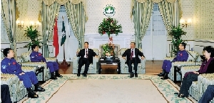 何厚铧在晚宴前会见了代表团一行,国家载人航天工程赠送“神舟七号”载人飞船模型给特区政府,何厚铧代表特区政府赠送金莲花摆设给代表团。