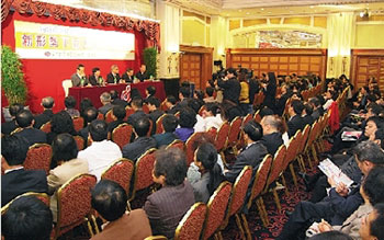 和统会举办讲座,张铭清谈两岸新形势。(图片来源:澳门日报)