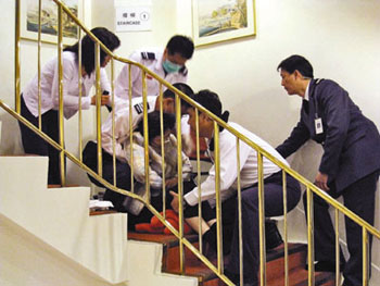 立法会“调查有关梁展文先生离职后从事工作的事宜专责委员会会议”主席李凤英在12日中午由立法会大楼二楼前厅循楼梯离开时,在第三级左右的位置怀疑失足,身体向前冲滚了八级梯级,直到楼梯的转角位才停下。在场有记者在采访另一宗新闻完毕后路过,见状即跑到地下入口处,通知保安人员。