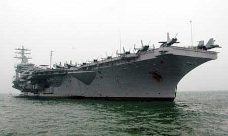 尼米兹号航空母舰是一艘隶属于美国海军的超级航空母舰,满载排水量近十万吨,于一九七二年五月正式下水。尼米兹号曾于一九九一年前往波斯湾参加海湾战争,以及一九九六年三月中国在台湾海峡进行导弹演习时,尼米兹号被派遣至台湾海峡巡逻。