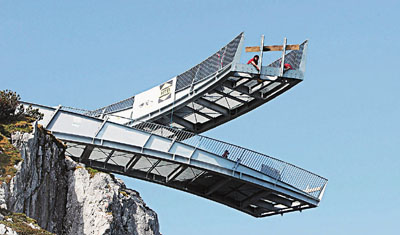 观光塔名为AlpspiX,位于德国南部加米施-帕滕基兴地区,筑于Alpspitze山上。观光塔以两个臂状结构组成,每臂长24米,其中13米凌空而出。两臂折迭,活像一柄巨型剪刀,而且采方格结构,不会堆雪。每臂末端更有一道玻璃墙,让游客可尽情俯瞰雪山风光。