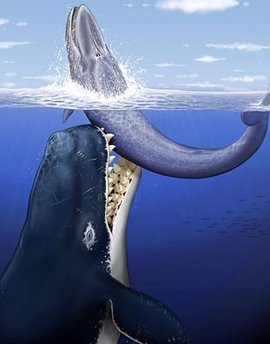 地球上的生物,以这种抹香鲸的嘴巴最大,一口可吞下一整个人,并以其它鲸鱼为食。这种史前“杀人”抹香鲸还有长达36厘米的巨齿,可轻易将猎物撕裂咬碎。巴黎“自然历史博物馆”的蓝柏特博士与同事指出,这种“杀人”抹香鲸不仅有巨齿,而且分为上下两排。