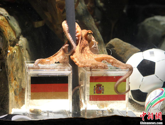 中新网7月9日电 据香港“星岛日报网”报道,南非世界杯期间,章鱼“保罗”横空出世,准确预测了几个场次的比赛,结果使它一跃成为家喻户晓的“明星”。然而,西班牙首相萨帕特罗现在却担心起了这条章鱼的安全问题。