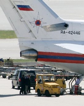 现场记者指出,该架客机停放在一架编号为RA42446的俄罗斯客机旁边,两架客机靠得很近,记者无法看见客机舱门的情况。