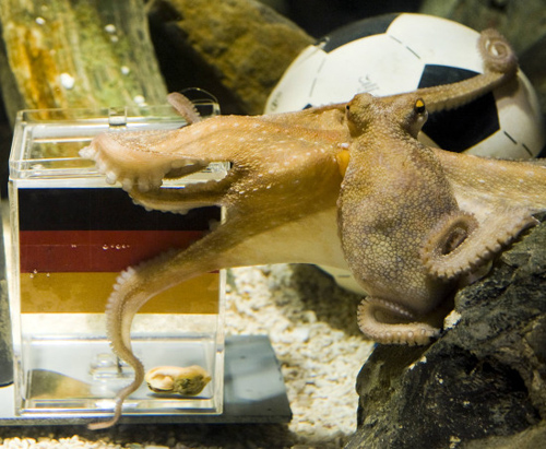 保罗是一条普通章鱼,在无脊椎动物中,这类章鱼智商最高。在实验当中人们发现,章鱼似乎可以区别不同物体的亮度、尺寸和形状。