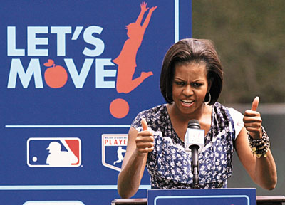米歇尔近期频频在公众前现身,推动超重儿童多做运动,她上周现身巴尔的摩篮球场,获得现场大批学童鼓掌及欢呼支持。难怪有资深民主党军师指出,“奥巴马令人动怒;米歇尔令人欢容。”