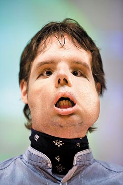 奥斯卡五年前意外开枪轰烂自己脸部,尽管保住小命,但却长期无法正常呼吸、吞咽和说话。今年三月廿日,奥斯卡在瓦尔德希伯伦大学医院接受全脸移植,脸部组织来自一名脑死捐赠者。