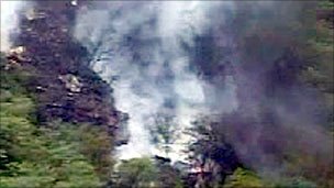 警方和救援人员表示,现场可见升起的浓烟。报道称,恶劣天气可能是出事原因。出事地点地势状况不佳,恐不利救援。