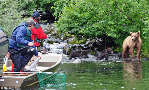 中新网7月29日电 据外媒报道,近日,美国前共和党副总统候选人佩林与亲朋在位于阿拉斯加州的沃尔佛林泛舟垂钓时,遭遇一只母棕熊,不过没有受到伤害。