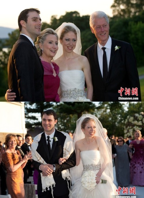 据法新社8月1日报道,比尔和希拉里在一份声明中宣布,“今天,我们怀着极大地自豪和激动的心情,看着女儿切尔西和(女婿)马克在阿斯特庄园亲人和密友们的见证下,举行这场美丽的结婚典礼”。