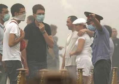 截至8日,俄罗斯全境森林大火火情继续缓解,在燃烧的554处火点中有362处得到控制。 不过莫斯科因为山林野火及周边的泥煤沼田燃烧引起的刺鼻烟霾,使得空气中的二氧化碳悬浮微粒超标5、6倍,当局呼吁民众最好待在室内,如要外出,也务必要戴上口罩。卫生当局说,目前莫斯科的污染程度有如一天抽上好几包香烟。