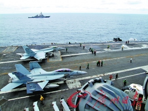 本报讯 据美国媒体8日晚从美军航空母舰“乔治·华盛顿”号上发出的消息,目前该航母抵达越南岘港附近的南海海域。