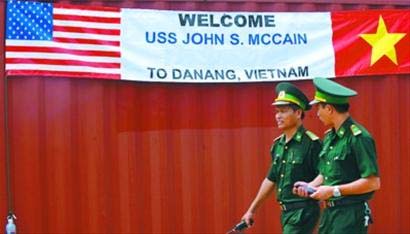继美军核动力航母“乔治·华盛顿”号8日抵达越南中部岘港附近的南海海域后,美军“约翰·麦凯恩”号驱逐舰又于10日在越南岘港靠岸,准备进行军事交流。此时正值南海问题引发外交纷争之际,美越间的频繁互动成为各方关注的焦点。