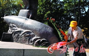 摩尔曼斯克的纪念建筑上刻有“献给和平时期牺牲艇员”。纪念建筑鲜花环绕,周边还摆放人们敬献的花圈。