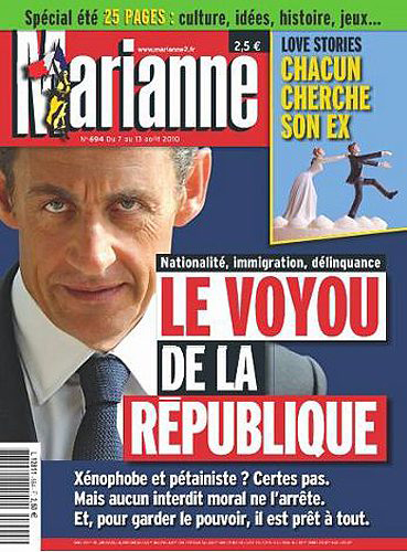 据瑞士《新苏黎世报》12日报道,法国著名政论周刊《Marianne》本期杂志刚一上市便被读者抢购一空,如此热销只因总统萨科齐成为封面人物,边上还配以大字标题《共和国的饭桶》。舆论认为,该周刊的做法超出了新闻自由和道德的底线。