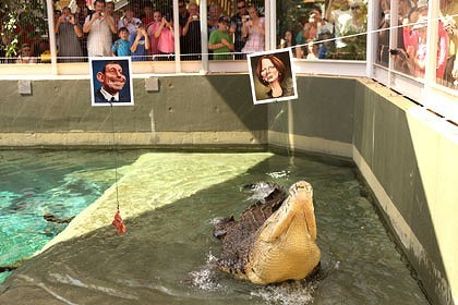 中新网8月20日电 据外电报道,澳大利亚一家动物园18日让鳄鱼对将于21日举行的大选做出预测,结果现任澳大利亚总理吉拉德被鳄鱼看好将在选举中胜出。