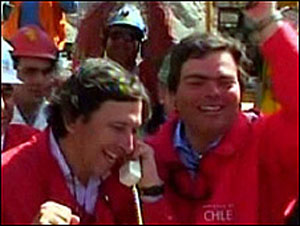 报道称,救援人员通过钻孔接通电话线,被困矿工通过电话说他们健康状况良好,但是说他们有胃痉挛,因为被困十几天当中,每48小时每个矿工只能吃两汤匙金枪鱼,一口牛奶和半块饼干维持生命。