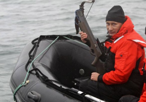 据俄罗斯《莫斯科时报》8月25日报道,俄罗斯总理普京经常通过摆弄武器、显露肌肉展现男子汉气概。日前他前往勘察加半岛附近的奥尔加港参与科学考察时,乘坐橡皮艇、手持劲弩,再次秀了一把射飞镖猎捕灰鲸的风采。