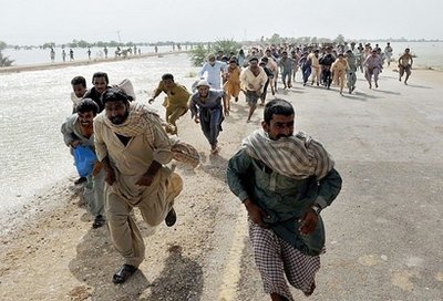 在巴基斯坦南部信德省的一座城镇萨塔,30多万居民中的70%因为印度河溃堤而被迫逃亡。