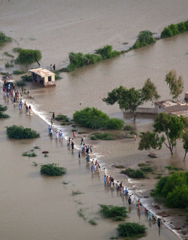 洪水已经淹没了巴基斯坦三分之一的土地,援助物资依然极为匮乏,工程师们经常需要面对将洪水引向何方的困难抉择。毁掉堤坝是控制洪水水位最常用的方式之一,谨慎行事可以减小洪灾的影响。可是,一些报道称,旁遮普省Muzaffargarh地区的地方官员迫使工程师将洪水引向人口密集区,而避开更小、更富裕的地区。