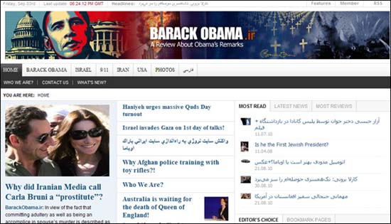 据英国《卫报》9月2日消息,伊朗一个支持总统内贾德的记者团体,近日专门为美国总统奥巴马创建了一个网站,主要是站在伊朗的立场上分析奥巴马的各种观点。网站亮相第一周便赢得了近10万的点击。