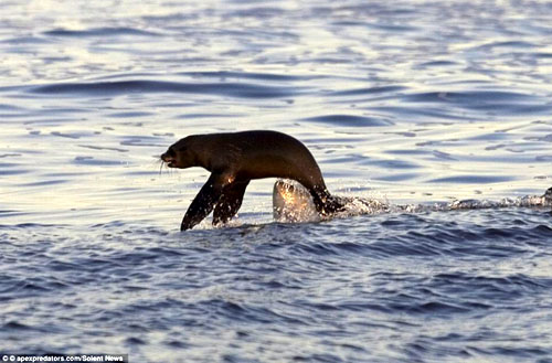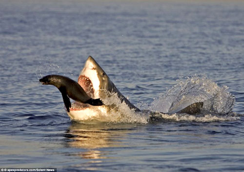 这一幕发生在南非开普敦的海豹岛。根据照片资料,这只鲨鱼大约有10岁,而海豹约有9个月大。克里斯表示,他很惊讶看到这样死里逃生的场面,海豹在鲨鱼的攻击下逃脱的几率为50%左右。(木又)