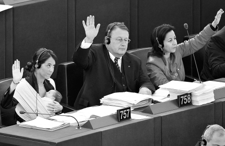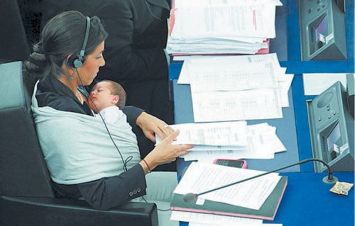 你一定很少看见女性议员携婴儿出席重要会议并参加举手表决吧?然而这一幕却真实地发生了。据英国《每日邮报》报道,当地时间9月22日在法国东北部城市斯特拉斯堡举行的一次欧洲议会会议上,来自意大利的女议员龙祖洛居然把出生仅一个多月的女儿维多利亚抱在怀里,好在整个会议过程中维多利亚一直在熟睡,并未影响会议进程。