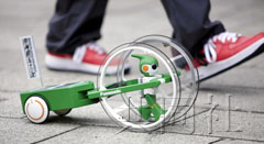 据报道,这种机器人采用旅人拉着拉板车步行的造型。机器人全长约40cm,宽约15cm,高约20cm。重量约为1公斤,以12节“充电式EVOLTA”5号电池为动力。机器人将追踪工作人员手持的红外线设备,以2至3公里的时速前进。