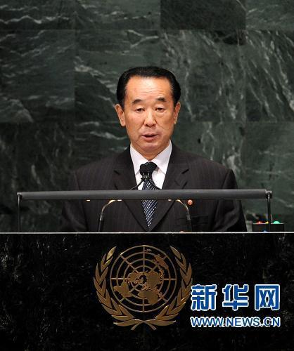 9月29日,朝鲜副外相朴吉渊在纽约联合国总部举行的第65届联大一般性辩论上发言。朝鲜副外相朴吉渊发言时说,只要美国不停止对朝鲜的武力威胁,朝鲜就不会放弃核威慑。新华社记者申宏摄