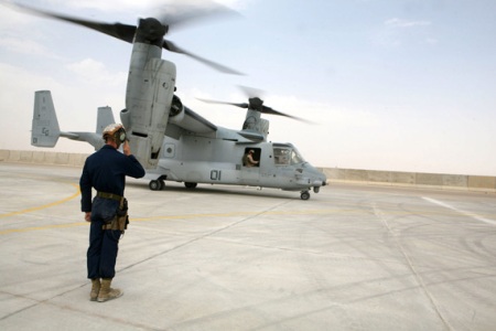 中新网10月2日电 据日本共同社网站1日报道,美国海军陆战队近日公布了《2011会计年度海军陆战队航空计划》,指出将从2012年开始在美军普天间机场(位于冲绳宜野湾市)部署MV-22“鱼鹰”倾转旋翼机,部队名称为“第561倾转旋翼中队”。