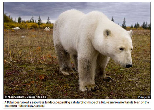 中新网10月5日电 据台湾“今日新闻网”5日报道,摄影师尼克(Nick Garbutt)拍到一组震撼人心的照片──有别于一般人的常识,他拍到许多白色的北极熊置身在“大草原”上──这都是全球暖化惹的祸,它们在草原里踱步,看似悠闲,其实全是无处可去,到处觅食而终日饥饿。