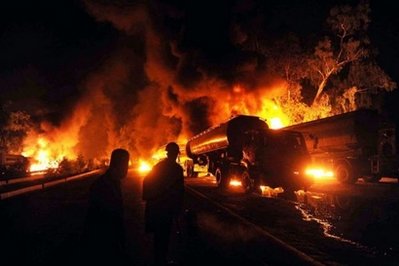 中新网10月7日电 综合报道,塔利班分子6日在巴基斯坦西部奎达附近出击,攻击北约部队的一支运输车队,烧毁20多辆运油车,有一个司机不幸身亡。之后,在西北部城市瑙谢拉,又有至少36辆油罐车遭武装分子袭击起火。连昨天的两次攻击在内,过去的一星期内,这类事件已经发生5次。