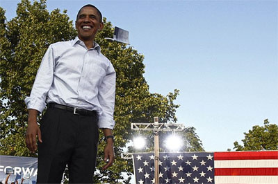 中新网10月11日电 据外媒报道,美国总统奥巴马10日在费城参加集会时上演惊人一幕,他差点被一本朝其扔来的书本砸中脑袋。