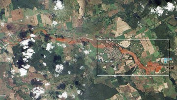 俄新社10月11日报道,卫星照片清晰显示出有毒废料已扩散到河道两岸以及居民区。照片显示,污染河道有15公里长,50米宽。分析指出,污染已渗透到河床底部的土壤,这比河水被污染更糟糕。