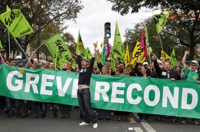 中新网10月13日电 据香港《文汇报》报道,法国参议院11日通过退休金制度改革法案,国民退休年龄由65岁提高至67岁,消息触发工会12日再发动全国大罢工(见图),使石油港口瘫痪,加上多间大型炼油厂几乎停工,燃油供应面临短缺,全国汽车燃油最多只能维持2周。