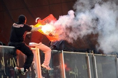 意大利与塞尔维亚足球队原定于12日举行2012年欧洲杯资格赛,由于暴力事件被迫取消。在比赛前、过程中与结束后,一些塞尔维亚球迷将攻击目标不仅对准意大利球迷与当地警察,还对准了塞尔维亚球队的守门员。