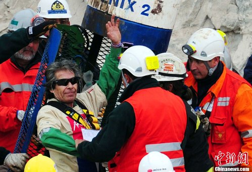 据报道,快到当地时间13日上午9点时,现年56岁的乔治.加利古洛斯(Jorge Galleguillos)顺利升井,成为智利圣何塞铜矿第11名被营救出来的被困矿工。