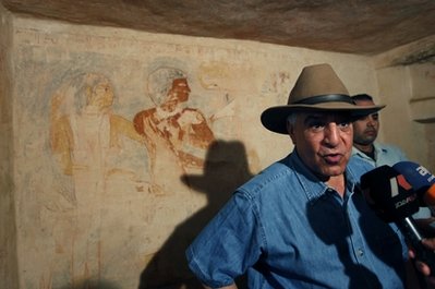 考古学家称,这座古墓距今已经4300年,大小相当于一节火车车厢。古墓墙壁上有象形文字和一些图案,其中一些图画仍栩栩如生。