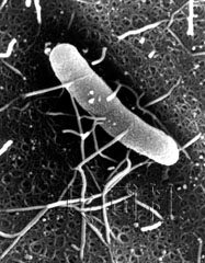 该细菌长约2微米。据悉,同普通大肠菌相比,超级细菌的鞭毛更多,更具灵活性,感染能力也更强。超级细菌的特征是表面覆有一层可抵御白血球攻击的膜,并可以改变形状。